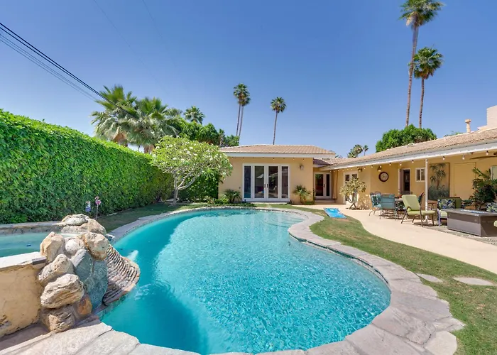 De 3-badkamer villa bevindt zich in de wijk Palm Springs Uptown, binnen een paar straten van de Deepwell Estates. Gasten kunnen een bezoek brengen aan Ruddy's General Store Museum, binnen 10 minuten rjden vanaf Patio, Pool And Mountain Views Palm Springs Home!, of een kijkje nemen bij de Moorten Botanical Garden and Cactarium, op 25 minuten lopen ervandaan. Winkelliefhebbers zullen genieten van de locatie op afstand van 2 km van Antique Galleries of Palm Springs.
